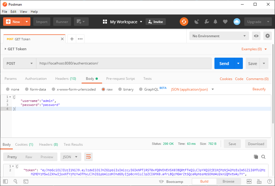 Now that everything’s set up, we can almost start using the application. The last thing we need is an endpoint where unauthenticated users can enter their credentials and obtain a valid token from the backend which can be used to access a secured resource.
