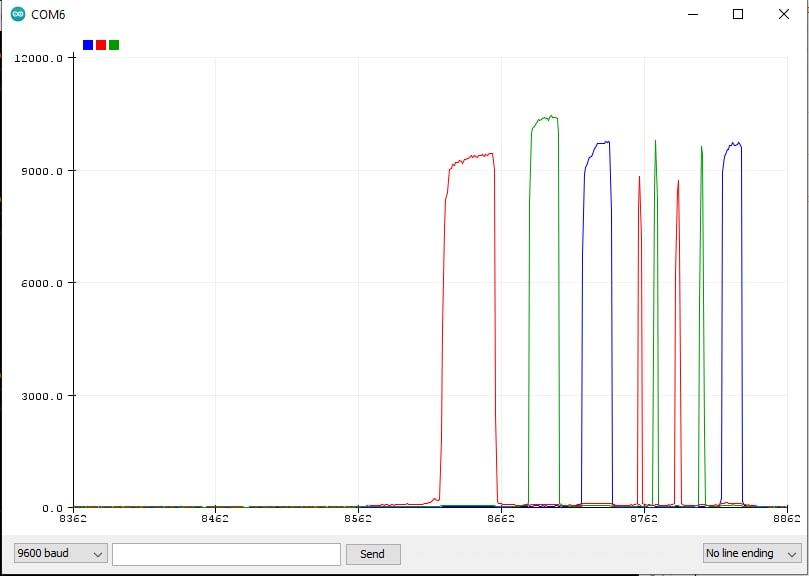 Figure 2: The output of the test script. Each color represents a different conductive pad.