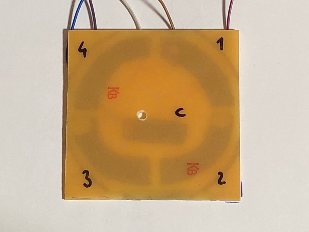 But before I could implement the previously discussed functionality, I had to come up with a way to detect a user’s finger. For that, the finished device needs some metal objects that form one side of the capacitor that senses the user input. At first, I thought about adding some small metal strips or something like washers. That, however, turned out not to be precise enough. Furthermore, it would make it more difficult to design and assemble the case of the device.